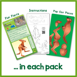 Just pop out the pieces and make your very own kangaroo. It's easy and fun to make this mother with a joey in the pouch and when complete, it will look great on display.  Included in the pack are instructions and some fun facts about kangaroos.  An example is included below.