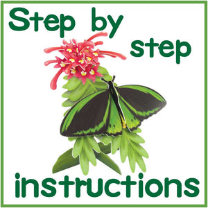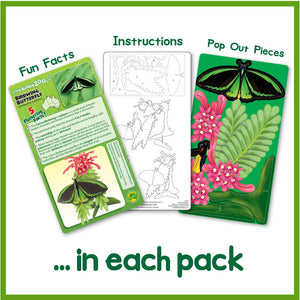 Just pop out the pieces and make your very own birdwing butterfly. It's easy and fun to make this very pretty butterfly and it will look great on display at home. Included in the pack are instructions and some fun facts about birdwing butterflies. An example is also included below.