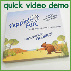 Quokka joeys live in the pouch for about 6 months and stay with the mother another 4 months or so after that. This 60 page flip book quickly captures mother and son "knocking" around together in the bushland on Rottnest Island. This beautifully illustrated flip-book makes a great fun gift.
