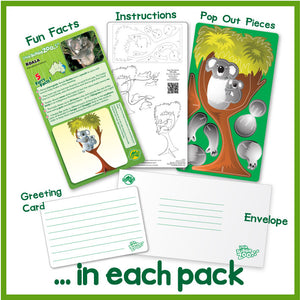The recipient can just pop out the pieces and follow the simple instructions to assemble this koala..... then put it on display. There are also some great fun facts to learn along the way about these furry, friendly Australian. eg . Fun Fact! did you know that Koalas have unique individual fingerprints similar to humans.