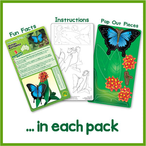 Just pop out the pieces and make your very own Ulysses Butterfly. It's easy and fun to put together this beautiful tropical butterfly and once assembled, will look great on display. Included in the pack are instructions and some fun facts about these blue icons of tropical Queensland.