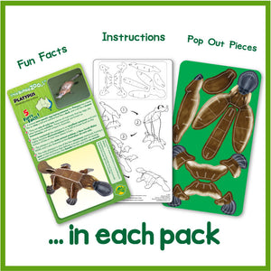 Just pop out the pieces and make your very own platypus. It's quite easy and fun to assemble this amazing and unique Australian animal pop-out. It will look great on show once completed. Included in the pack are instructions and some fun facts about platypuses. An example is included below. Check out this fun video below of the pop-out platypus. Fun Fact!