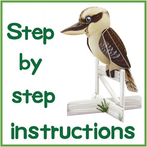 Just pop out the pieces and make your very own kookaburra. It's easy and fun to put it together and when complete, it will look fantastic on display. Included in the pack are instructions and some fun facts about kookaburras. An example is included below. Check out this fun video of the pop-out kookaburra. Fun Fact! Laughing kookaburras are quite the hunters...... they catch and eat insects, mice, and reptiles such as lizards and even snakes.... which is no laughing matter!
